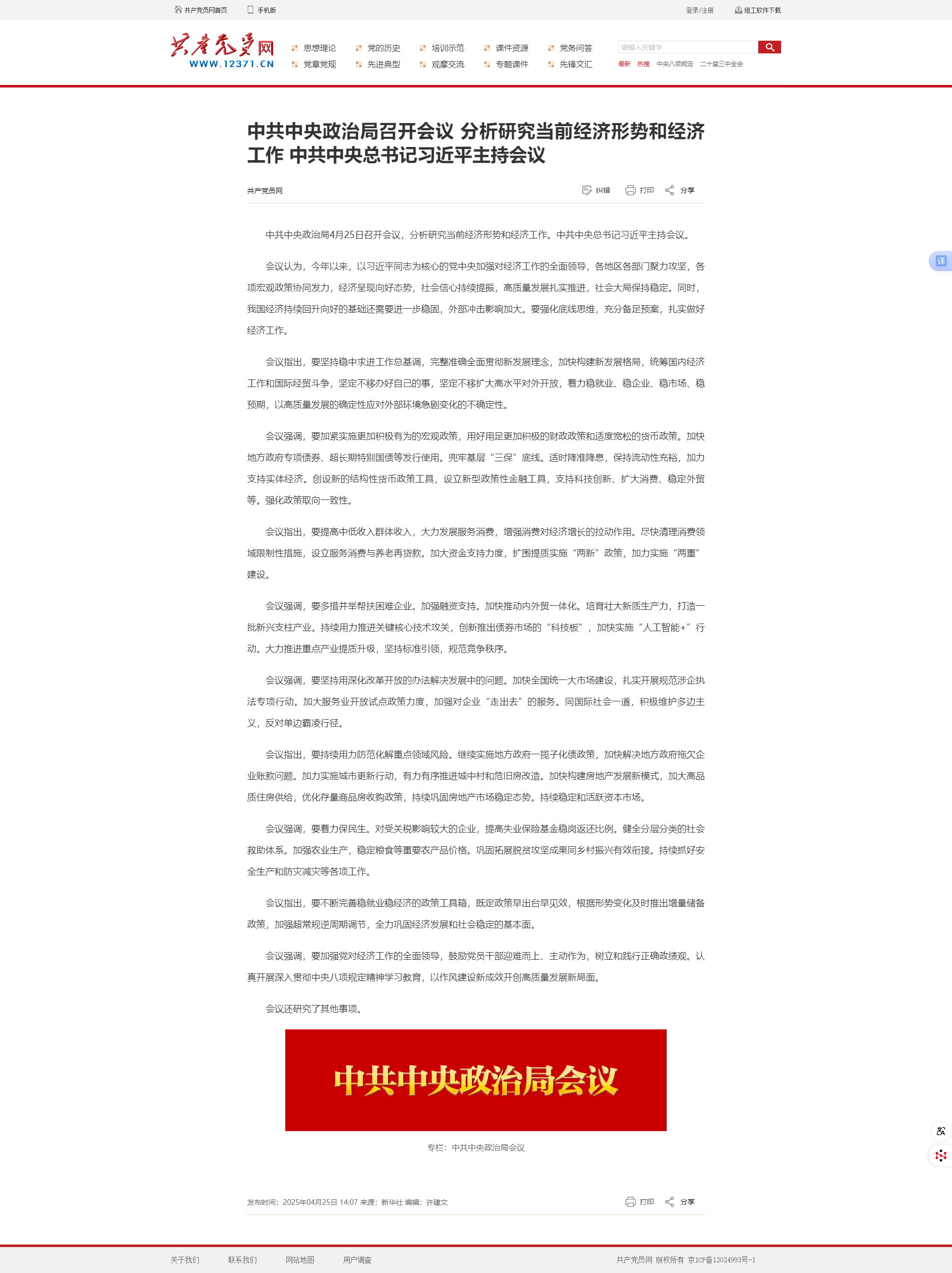 中共中央政治局召开会议 分析研究当前经济形势和经济工作