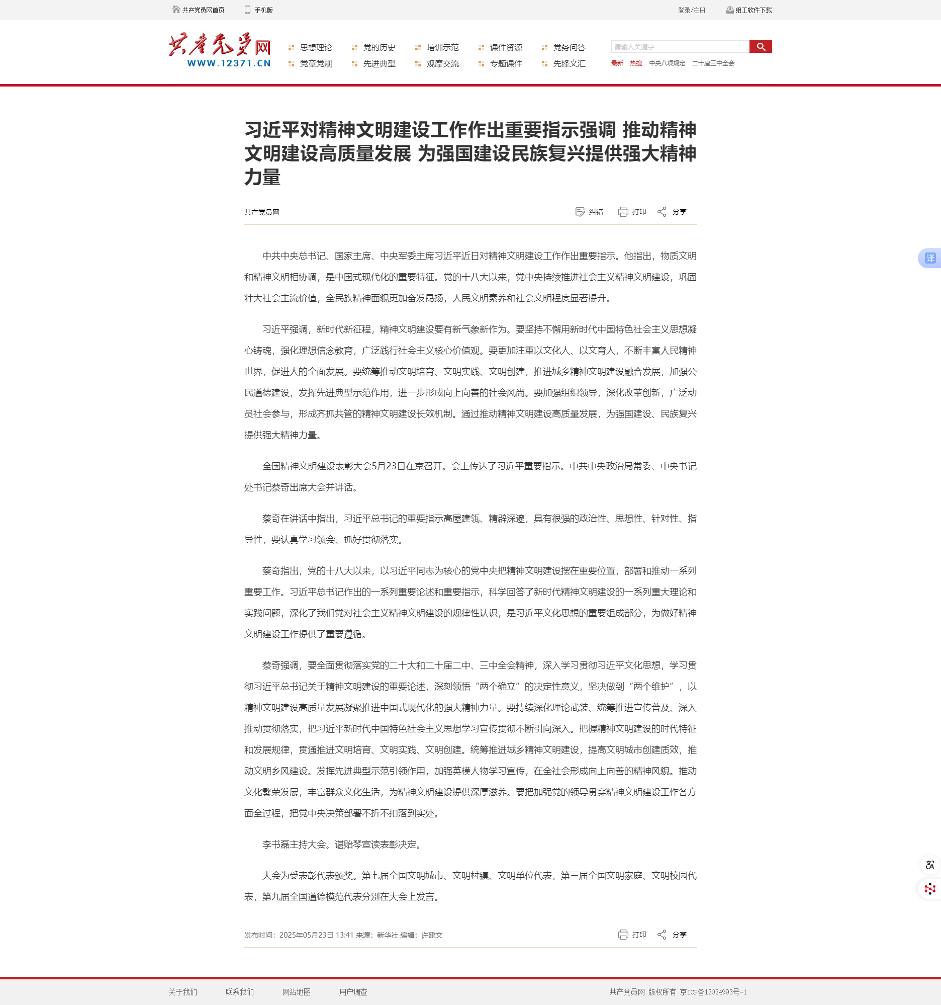 习近平:推动精神文明建设高质量发展 为强国建设民族复兴提供强大精神力量