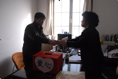 病魔无情,人间有爱。自校工会发出爱心倡议之后,王作恩老师重病的宝宝牵动着每一位圣翰人的心。学校领导及广大教职员工纷纷伸出援手、奉献爱心。截至2011年3月22日,校工会共收到306名教职工送来的爱心捐款共计31670元。当天下午四点,校工会主席许锐同志将募集到的爱心款全部交到王作恩老师手中。王老师接到沉甸甸的爱心款十分感动,感激之情溢于言表,他衷心感谢学校领导和同事们的热心帮助。