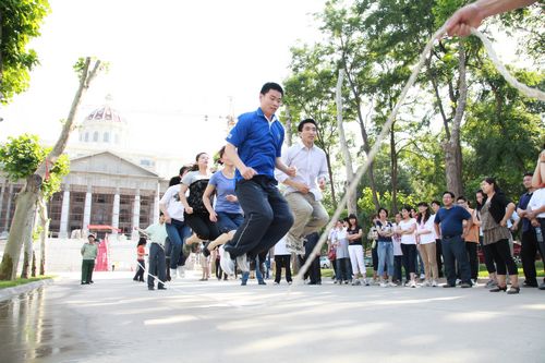 6月1日下午课外活动时间,在综合楼前举行了一场别开生面、精彩纷呈的教职工“八人跳大绳”比赛。本次比赛由全校各部门选派的十支强劲队伍参加,充分展示了我校教职工互助、合作的团队精神和圣翰的青春风采。