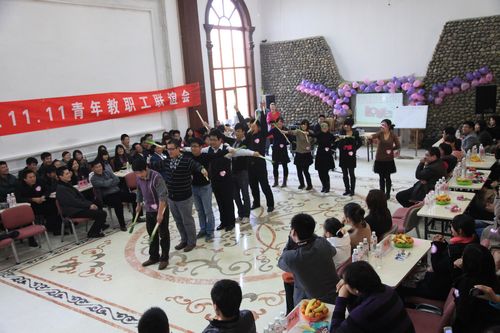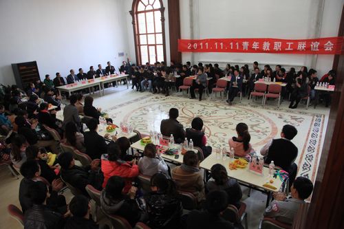 2011年11月11日下午1点11分,2011.11.11六个一青年教职工联谊会在我校圣翰府邸浪漫举行。联谊会由校工会主办,建工学院承办,参加人员以我校单身教职工为主,同时还邀请了力明学院的36名优秀单身青年教职工参加,大家欢聚一堂,共赴“浪漫之约”。