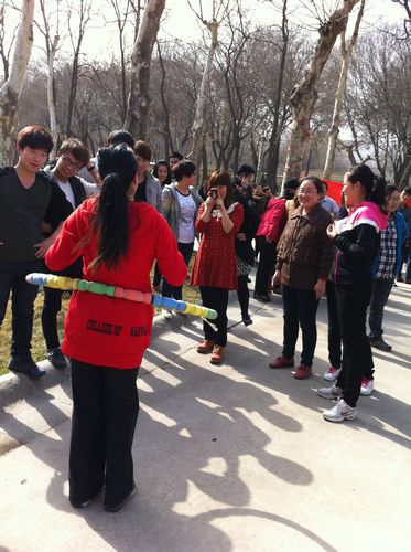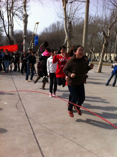 2013年3月8日下午,校园里传来阵阵欢声笑语。女教工们暂时放下手头的工作,投入到轻松有趣的活动中:“仙人跳”环节——每部门派出六名“精兵强将”,一分钟内跳大绳,数量多者为胜。大家默契配合,身手灵活,跳着、笑着,每个人脸上洋溢着灿烂的笑容,仿佛回到了无忧无虑的童年时光。在“金蛇狂舞”游戏中,一只只呼啦圈有如一条条被驯服的彩蛇“听话”地旋转着,尽显女同胞们的协调与柔美之态……