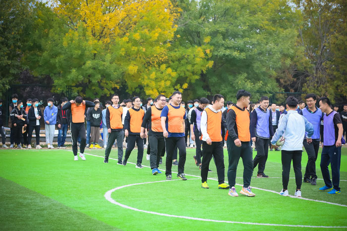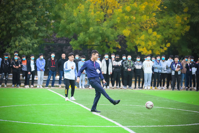 10月20日下午三点半,第一场比赛由财贸学院和行政部门展开角逐。随着裁判员的一声哨响,刘广耀校长亲自开球,比赛正式开始。