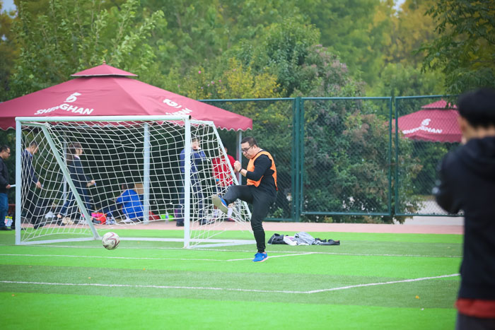 比赛伊始,双方打得比较保守,处于试探性的阶段。随着双方对彼此球风的了解,比赛开始激烈起来,双方球员也渐入佳境,不时打出精妙的配合和有威胁的射门。朱太亭老师脚下功夫了得,无论是抢球,传踢,气势凌厉。张建院长作为财贸队的后卫风采也是不减当年。孙建国副处长边路快马,犹如飞奔的猎豹,贾伟副处长则是中场大师,掌控全场。刚开始财贸学院稍有落后,但是在比赛结束前,老师们猛追中将比分拉近。双方各不相让,进攻、防守,你来我往,精彩纷呈。场外学生也激情洋溢,为队员们加油、呐喊助威,现场气氛十分热烈。最终常规时间双方打平,进入点球大战,比赛最后以行政部门队5:4险胜于财贸学院队。