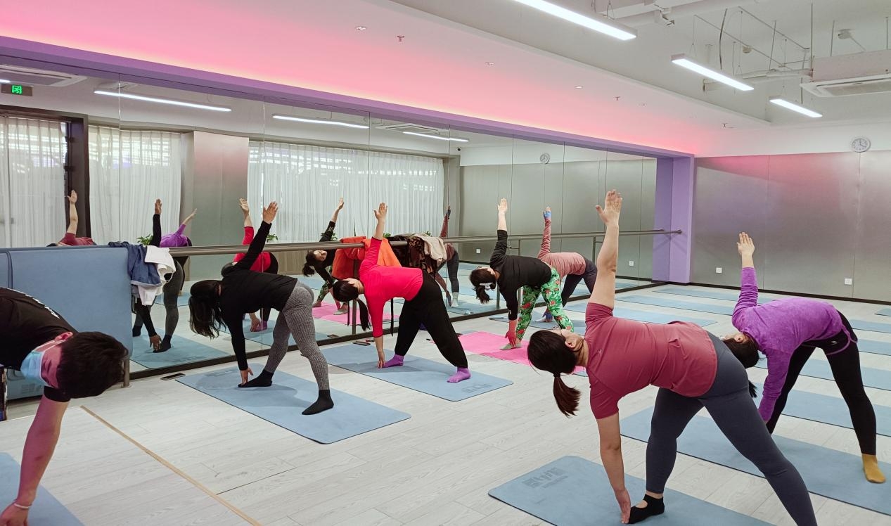 身体关节逐渐打开,肌肉觉知逐渐建立,在身体的前屈、后展、扭转中感受身体的放松和精神的愉悦,感受身心压力缓解。整个过程在身体流动中,也感受到了力量与柔韧的美感,身与心结合的专注。