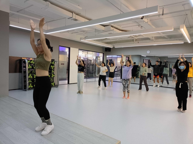 活动一经发出,再次得到了教职工们的积极响应。健身教练经过严格培训、考核上岗后,循序渐进地指导大家学习基本动作,教职工们伴随着动感明快的音乐节奏,舒展地完成了各个形体动作。