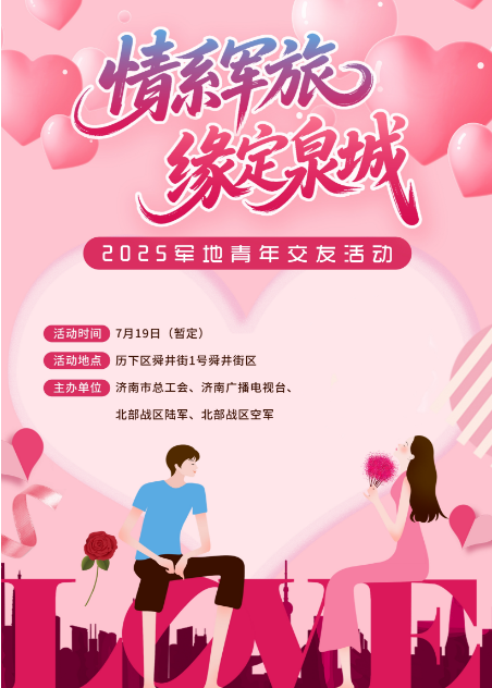 接山东省教育工会通知,暂定于7月19日,由济南市总工会等单位与省教育工会联合在历下区舜井街区举办军地青年交友活动,(部队男青年年龄25-35岁)。名额有限,各部门可组织有意愿参加的女教职工报名。