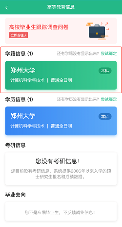1.关注学信网公众号,绑定学信网账号,点击“学信账号”,查看学籍学历信息