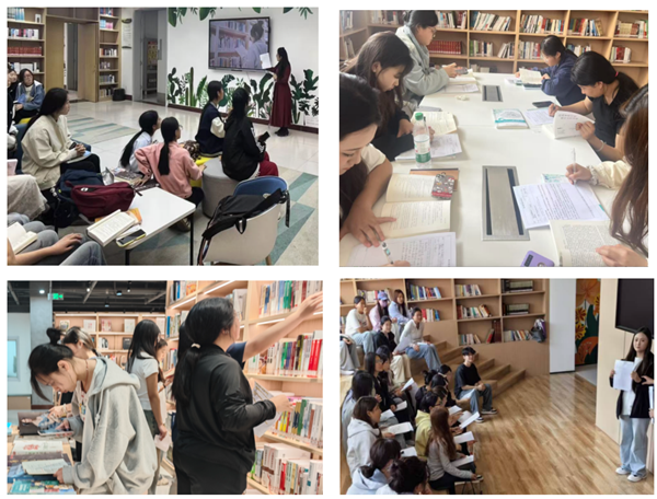 以项目驱动,将图书资源转化为实践“工具箱”。打破传统讲授模式,让学生依托图书馆资源自主建构知识。各小组在指定区域展开探究,从技能掌握到价值建构开展翻转实践,学生主导课堂,构建沉浸式互动场域。课程结束时,学生整合膳食方案、急救流程、心理疏导技巧等内容,标注每一项操作的来源,成为课堂的“活教材”。