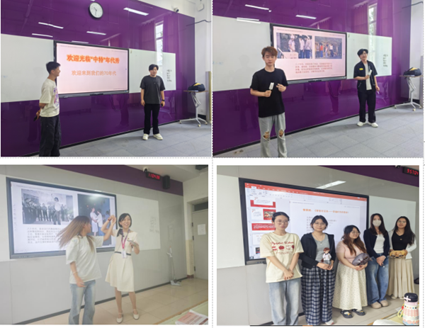 在“年代秀”表演项目中,小组成员分工明确且配合默契。部分成员负责采买道具:雪糕、瓜子、矿泉水,部分成员负责借用“蛤蟆”墨镜、牛仔裤、厚底鞋,骨干成员负责熟悉台词剧本,以便课上充分演绎。教师既是观众又是导演,对同学们的表演进行点评,并引导学生联系中国特色社会主义理论发展的国际背景,历史条件和实践基础深入探讨不同年代人们生活的变迁及背后原因,以小见大,帮助学生树立“大世界观”。