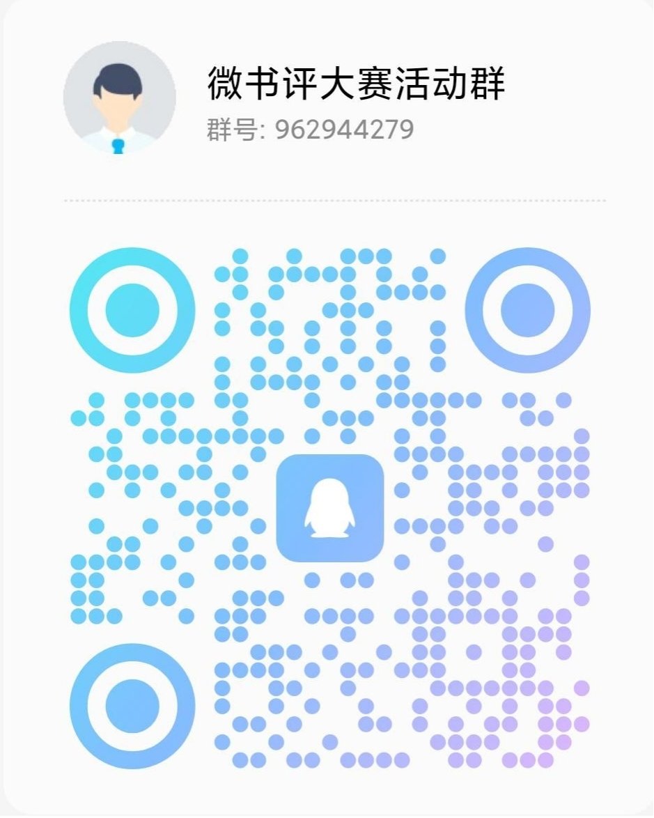 2.(1)线上投稿:扫描二维码进群提交书评,文件名包含个人基本信息及评论的图书(须为图书馆馆藏书籍),例如“李X—XX学院—XX级XX专业—138XXXX1234—《活着》”。