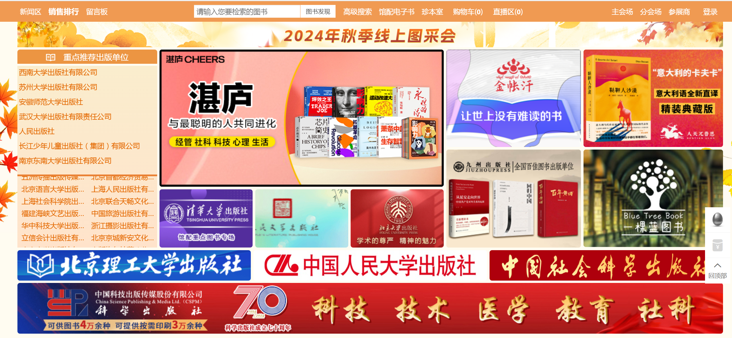 1、主会场:主要展示重点出版社书目,直接点击出版社名称即可进入选书界面。
