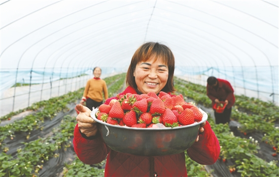 “每亩草莓的产量在2000斤左右,亩收入能达到3至4万元。”李贵志说,8月种植草莓,12月就能成熟,采摘时间一直持续到次年4月,草莓采摘结束后,还可以种植一季粮食,实现粮经轮作。