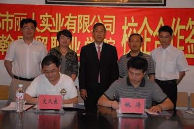 会上,我校就业与创业指导中心主任姚涛代表学校与企业方代表东莞市都市丽人实业有限公司人力资源总监文久良签署校企合作协议。