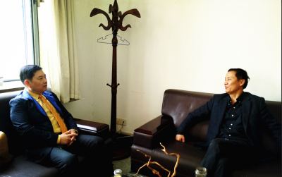 戈进杰校长(左)和陆彪总经理座谈
