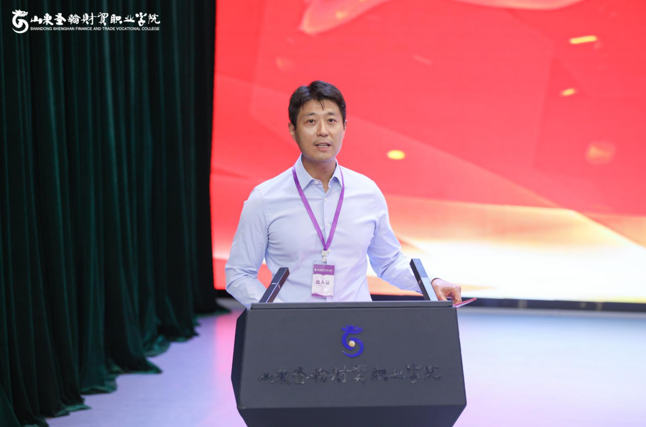 王峰代表长清区人社局发表讲话。他指出,山东圣翰财贸职业学院举办的此次校企合作大会是“校地企”各方多专业、多层次、多方面深度合作的基础一环。“校企地”三方建立战略合作,有利于加快推动校地合作、产教融合,促进学校、企业、政府在合作中实现共赢的发展目标。希望各方突出重点,做好平台、强化联动,做好衔接、抓好落实,点面开花。