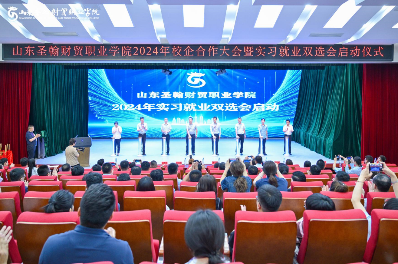 6月14日,山东圣翰财贸职业学院2024年校企合作大会暨实习就业双选会启动仪式在吉纯楼第二报告厅举行。学校校长刘广耀、山东省高等教育管理科学研究会产教融合研究院副院长杜阔辰、长清区人社局公共就业服务中心主任王峰、长清大学城管委会高校联络服务部副部长刘秀军出席了会议。与学校开展校企合作的24家优质企业代表参加了会议。大会分会场设在吉纯楼二楼大厅,100家企业到会与学生开展双选活动。活动由学校实习就业办公室主任冯兴师主持。