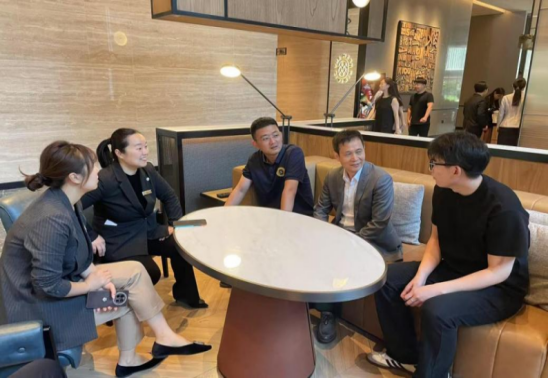 在烟台鑫广万豪酒店,受到人力资源总监刘影、人力资源部经理叶冬阳及优秀校友代表阎玉鹏的热情接待。校企双方通过观看企业宣传片,实地参观酒店相关设施,了解公司基本情况。人力总监刘影表示,酒店从业人员需要热情、周到、主动为客人提供良好服务的意识和行为,具备吃苦耐劳精神与高度责任感。刘影高度认可山东圣翰财贸职业学院的人才培养质量,期待学校持续输送优秀人才,为企业发展注入活力。姚东方介绍了学校相关专业的师资力量与学生整体情况,对公司给予学生的培养表示感谢,希望校企双方持续深化合作。