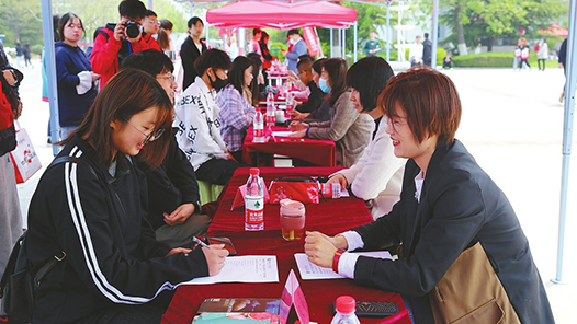 图为山东省一高校开展毕业生到基层就业招聘见面会。山东省人力资源和社会保障厅供图