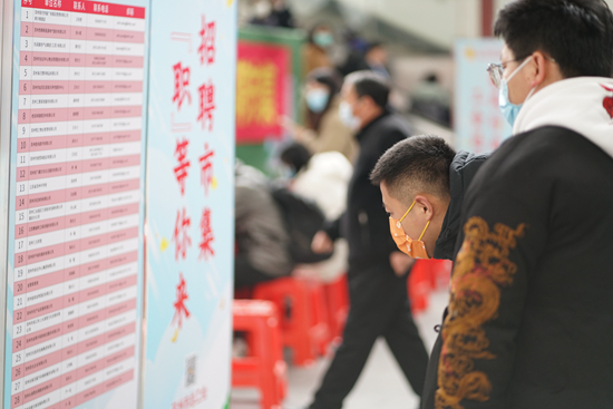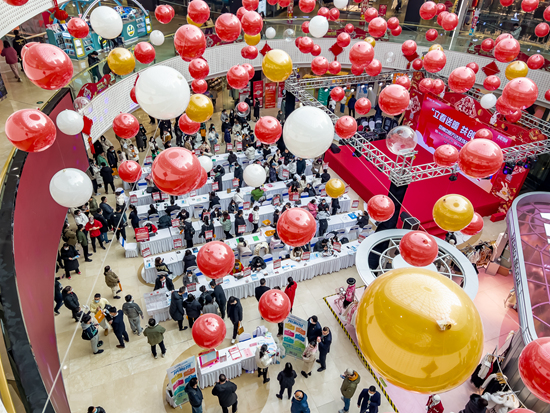 2月4日,郑州“2023春风行动暨就业援助月专场招聘会”在中原万达商场室内举行。