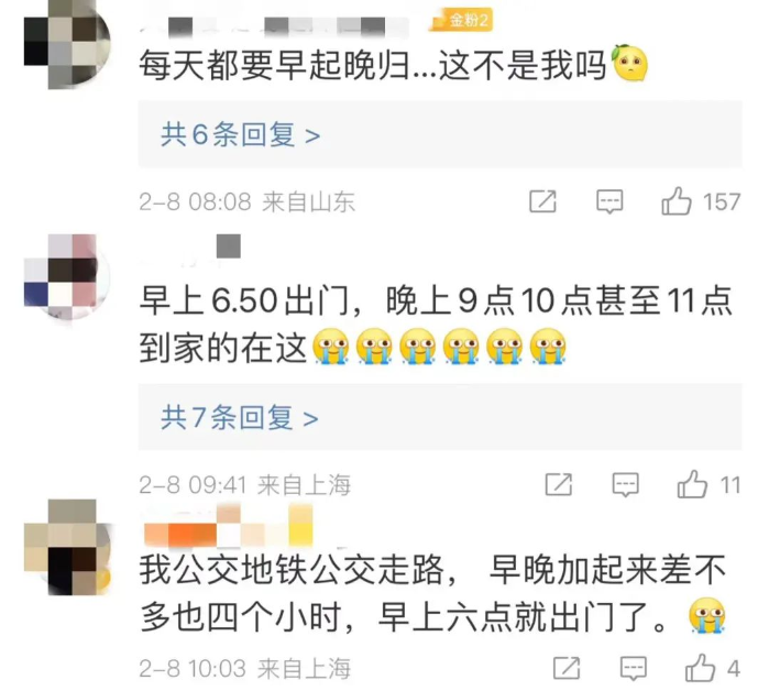 这两天,上海金女士极限通勤每天来回6.5小时,登上了热搜,也引发了不少打工者共鸣。