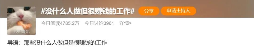 4月12日,话题#没什么人做但很赚钱的工作#引发网友热议。