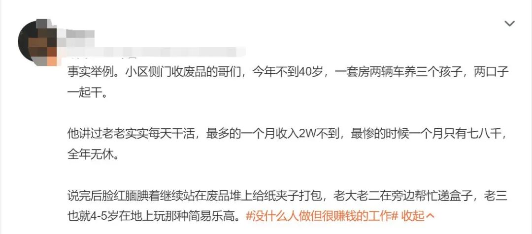 很多网友晒出那些不怎么起眼,但收入不错的工作,比如收废品。