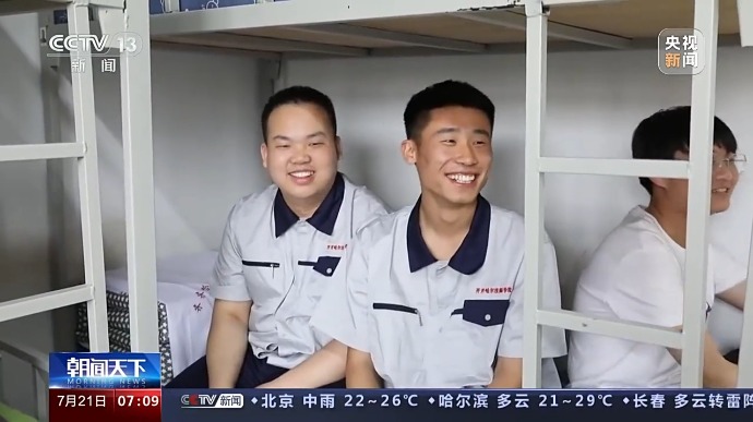 生产线在更新,技工院校的课程也在不断完善,新教师、新设备都让学生无限接近企业工厂。在这样的校园氛围下,记者也感受到了这些十七八岁年轻人对未来的憧憬。趁着午休,就读交通系二年级的梁家源,就带着记者来到了他们的宿舍。