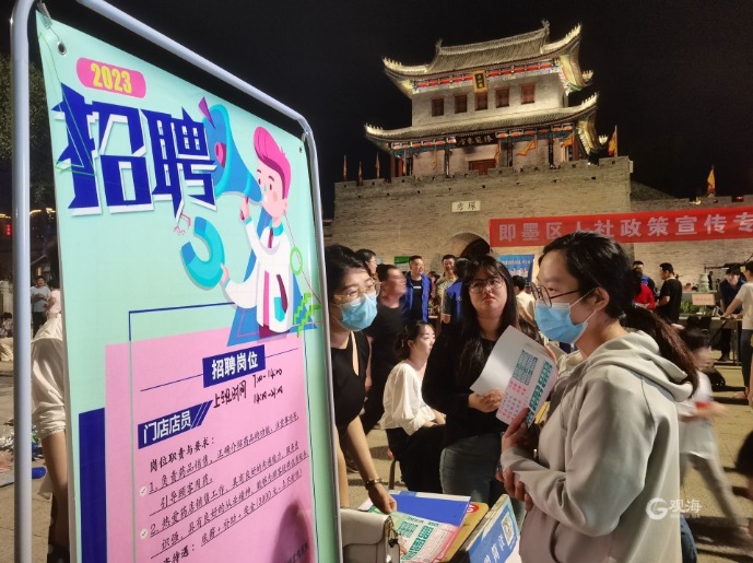 9月16日晚,即墨区在古城南门外广场举办了黄河大集之“金秋送岗·职等你来”秋季夜场暨第二场高校毕业生就业招聘会。借助即墨古城的夜经济,以古城的“烟火气”,为招聘活动“聚人气”,帮助更多的企业把岗位“摆出来”,更好的为求职者就业“亮绿灯”。