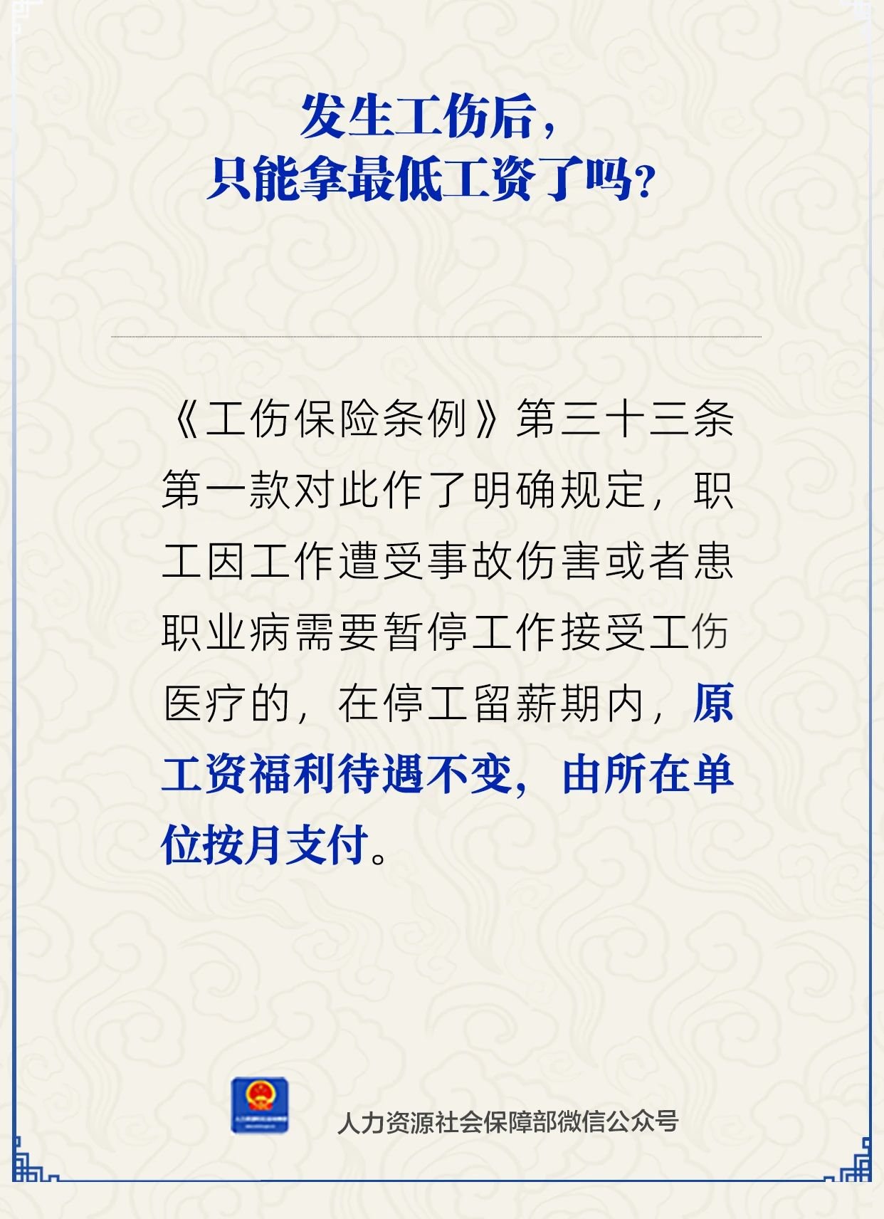 【人社日课·8月27日】发生工伤后,只能拿最低工资了吗?