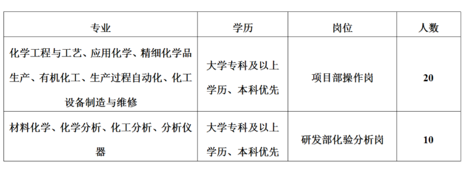 公司依托50年的化工生产管理经验,准备依照年轻化、知识化、专业化的要求打造一支富有活力的优秀团队,目前公司处于起步阶段,团队人员的平均年龄在35岁左右,具备广阔的发展空间。公司的发展离不开优秀的人才,现诚聘年轻而有潜力的专业技术人员加入我们的专业团队,公司将为优秀的专业人才提供广阔的职业发展空间、有竞争力的薪资待遇与福利保障。