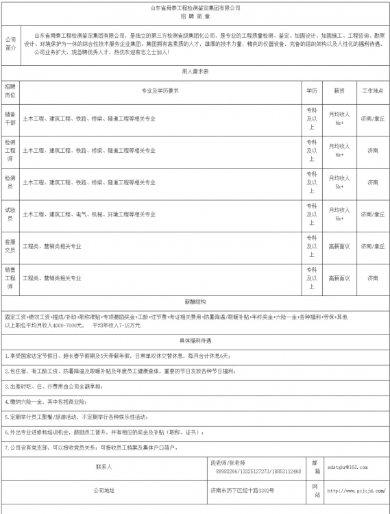 山东省舜泰工程检测鉴定集团有限公司招聘