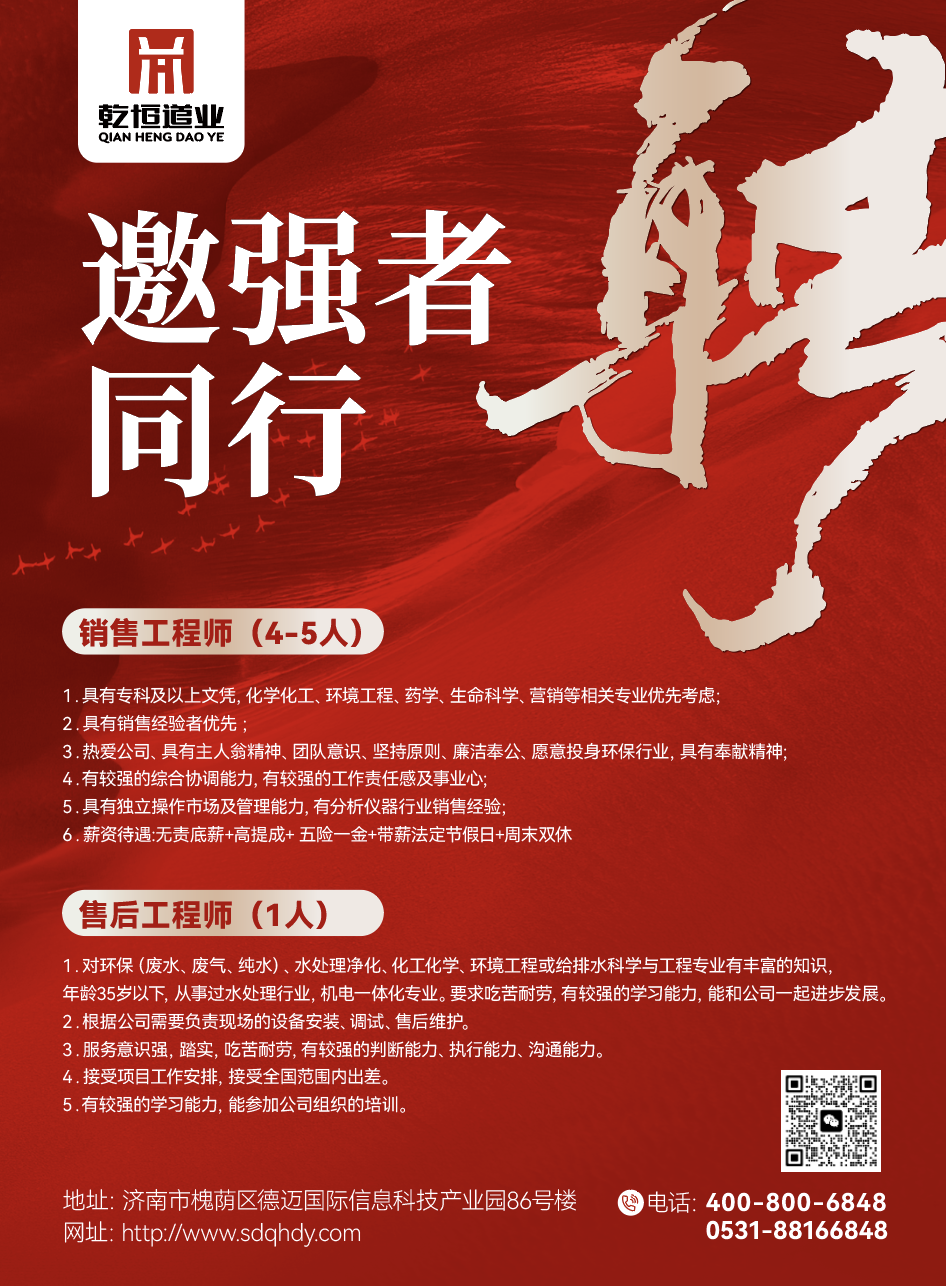 山东乾恒道业环保科技有限公司招聘信息如下: