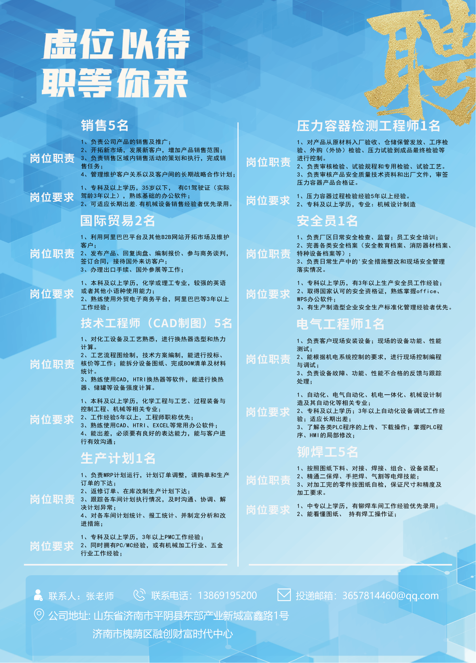 济南银帆机电设备有限公司招聘信息