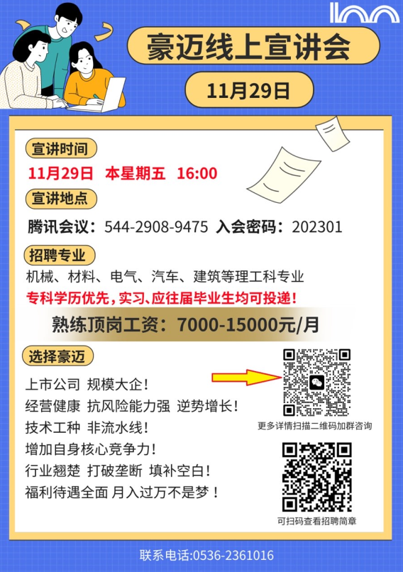【豪迈集团】新一波的招聘岗位开始了,以专科层次为主。