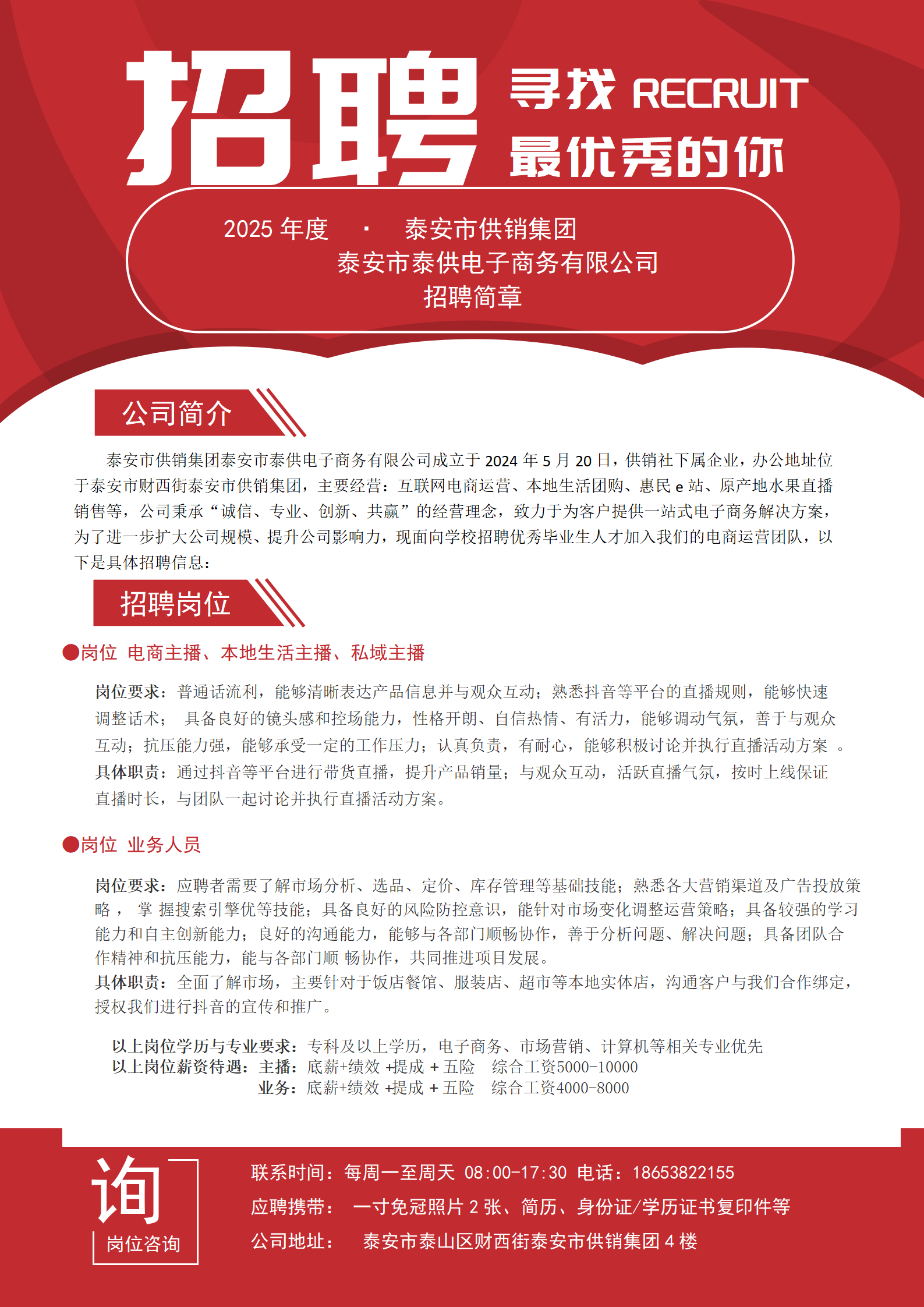 2025年度·泰安市供销集团泰安市泰供电子商务有限公司招聘简章