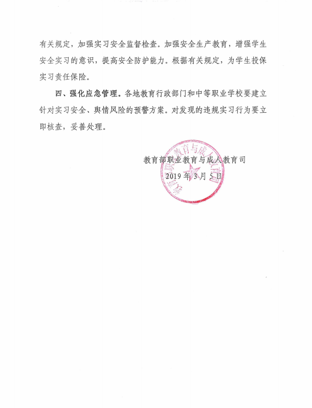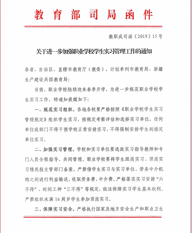 职教司:关于进一步加强职业学校学生实习管理工作的通知