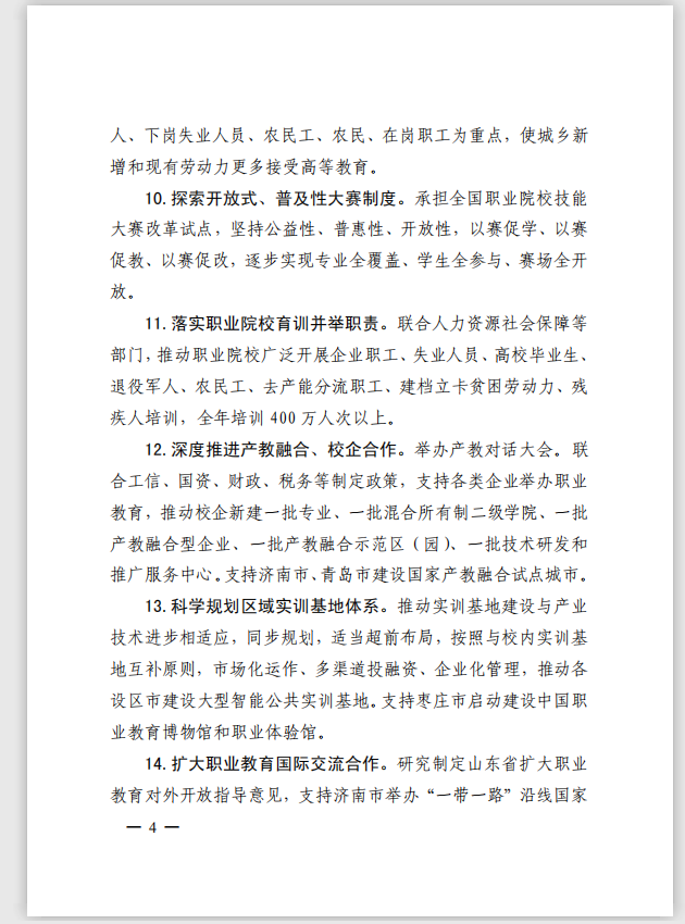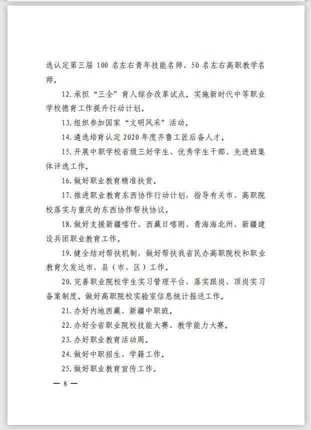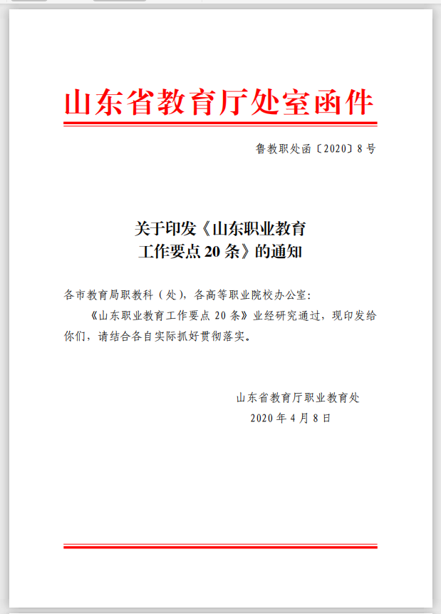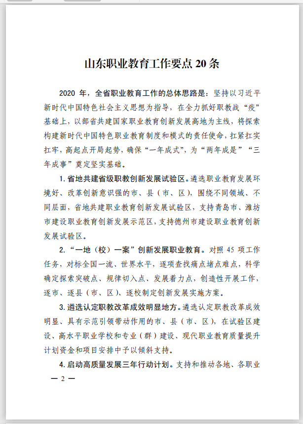 关于印发《山东职业教育 工作要点 20 条》的通知