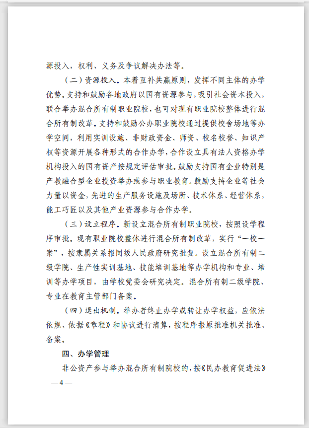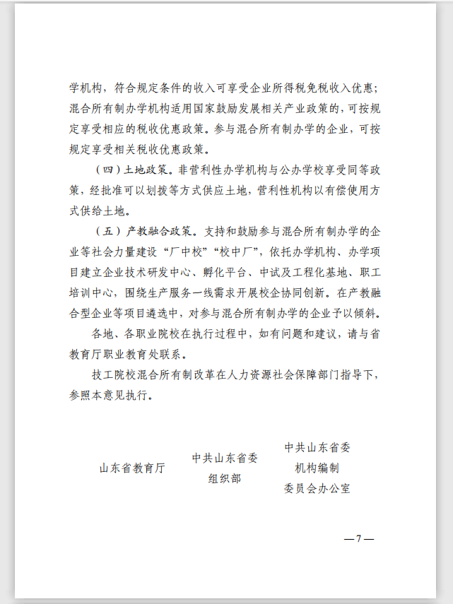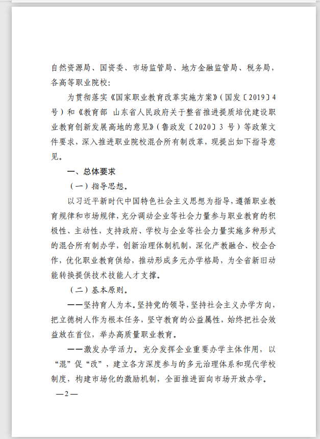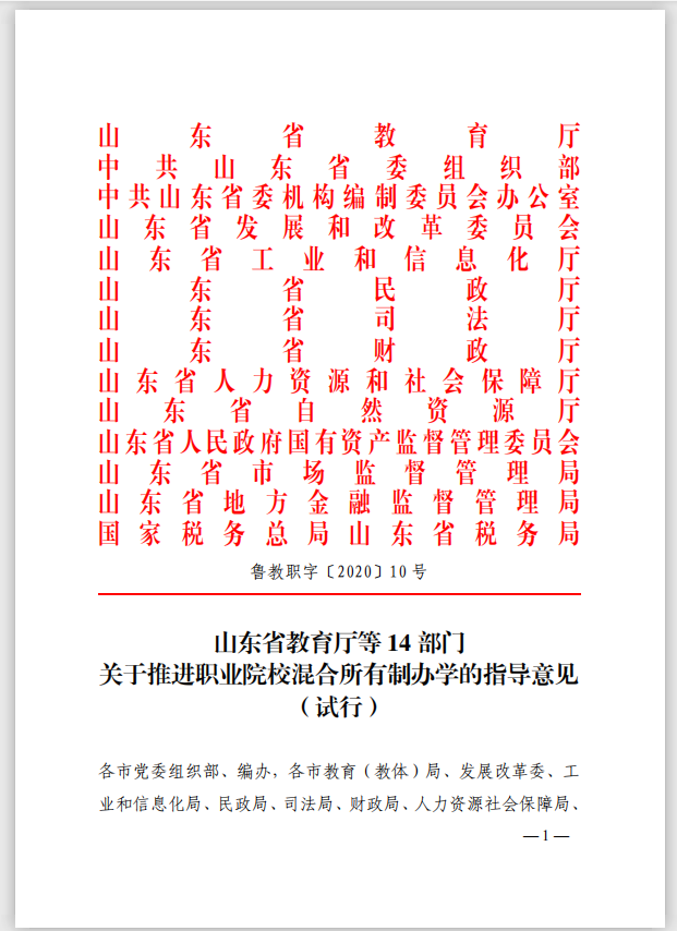山东省教育厅等 14 部门 关于推进职业院校混合所有制办学的指导意见 (试行)