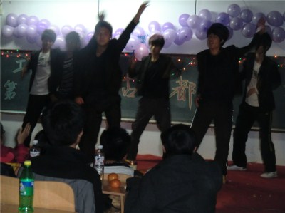 现场以彩色的气球,五彩的灯光,把同学们带入很high的氛围。首先,由一段劲爆全场的舞蹈拉开了男生节序幕,主持人致欢迎词后,一首优美动听的歌曲赢得了大家阵阵的掌声,当同学们还沉醉在歌声的余音中时,歌曲《我的舞台》让同学们不由自主的跟着熟悉的旋律击掌合唱,台上台下掌声笑声交织交汇,现场充满了浓浓的暖意。优美的旋律之后,一段段幽默诙谐的小品把同学们带入到了另一种境界,热烈的掌声响彻整个现场。最让人印象深刻、拍手叫好的节目恐怕要数《群魔乱舞》这个舞蹈了,一群帅气而又霸气十足的男生穿上裙子,令人震撼,这个舞蹈将晚会的气氛推向高潮,掌声一浪高过一浪。最后,以一首《我相信》结束了本次晚会。