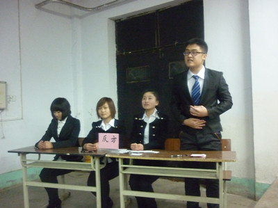 2011年12月10日,星期六晚6:30,山东圣翰财贸职业学院举行的“圣翰杯”辩论赛总决赛在A10阶梯圆满落幕。整场比赛持续了将近一个小时。比赛开始之前,建工院辩手们早已摩拳擦掌,胸有成竹,并且还准备了横幅,加油助威声震耳欲聋,一时之间场上场下弥漫着一股浓浓的火药味。