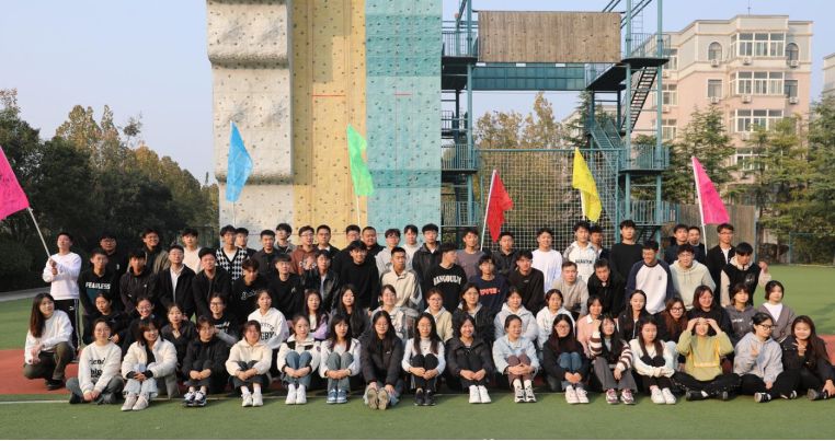 在素质拓展训练场地,学员们进行了“破冰行动”组队,凭借团队的默契配合,成功挑战了“多人击鼓”、“不倒森林”、“攀岩挑战”等项目,展现永不言弃、顽强拼搏的团队精神。