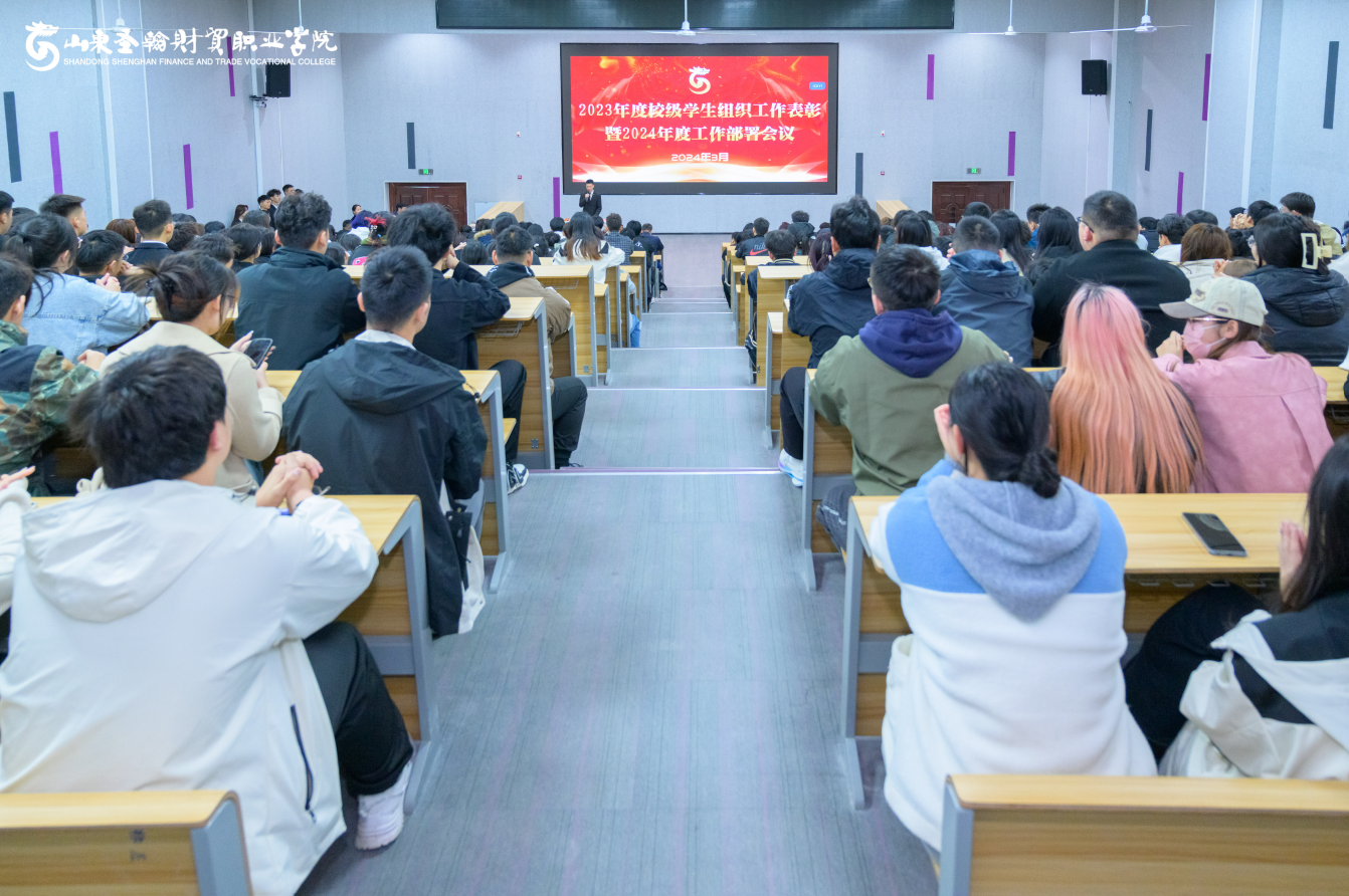 为总结经验,表彰先进,宣传典型,弘扬主旋律,传播正能量。3月19日中午,山东圣翰财贸职业学院在吉纯楼第三报告厅召开2023年度校级学生组织工作表彰暨2024年度工作部署会议。学校党委委员、学生处处长任寿亭,学校团委书记周光奇、副书记谢鑫,学生处副处长孙建国、王长收,宿舍管理科科长吕尊明出席会议。各校级学生组织指导老师及420余名校级组织成员参加会议。