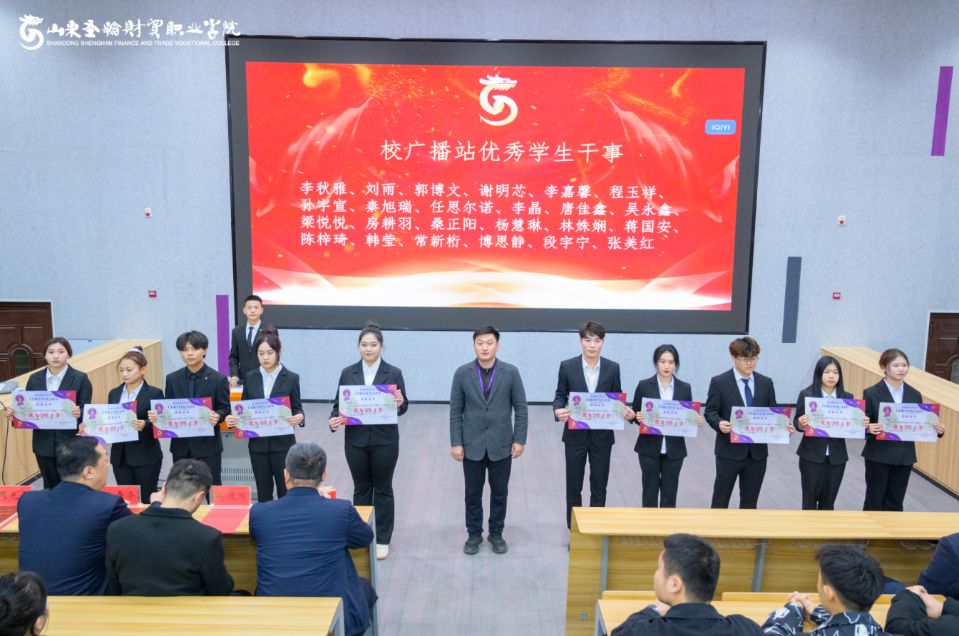 大会在国歌中拉开帷幕。周光奇宣读了《共青团山东圣翰财贸职业学院委员会关于表彰 2023 年度优秀学生干事的决定》,对校学生会、校广播站、军事爱好者协会、校自律委员会、青年志愿者协会、社团联合会等210余名优秀学生干事进行表彰。