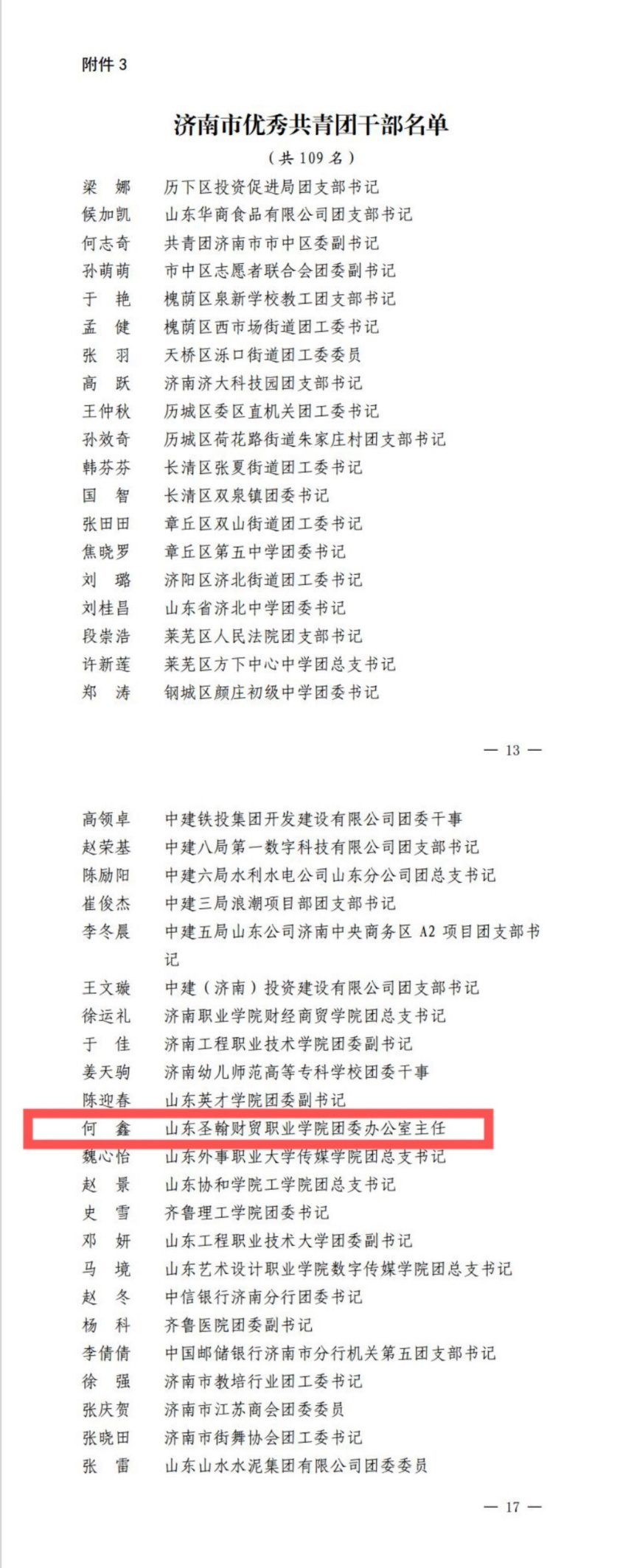 2023年度济南市优秀共青团干部:何鑫 山东圣翰财贸职业学院团委办公室主任