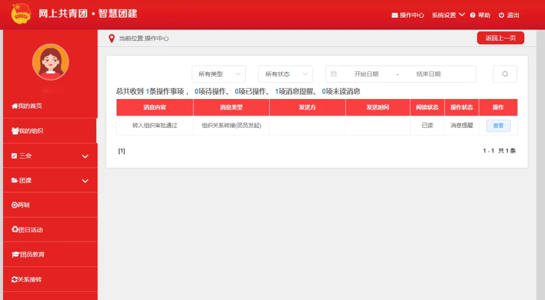 答:一般情况下,转入申请审核要按顺序通过组织审核,分别是:转出方上级团组织,接收方上级团组织。提交转入申请后,会有10天的审核周期,请同学耐心等待。