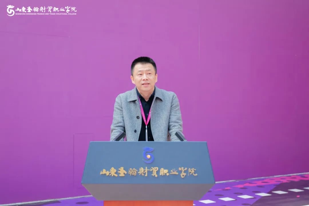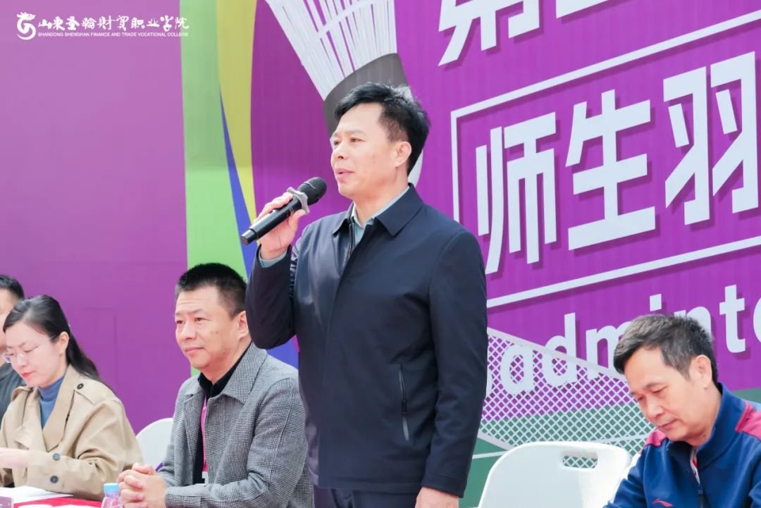 山东圣翰财贸职业学院副校长阎磊致欢迎辞,他强调体育育人的重要意义,并指出本次赛事是深化校际合作、推动全民健身的重要平台。 他希望全体运动员能够弘扬"团结、友谊、进步"的体育精神,以饱满的热情投入比赛,赛出水平、赛出风格;希望裁判员秉持公平公正原则,确保赛事顺利进行;更希望所有参与者都能在比赛中收获成长、增进友谊。