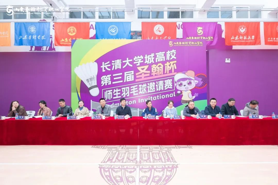 4月12日,由山东圣翰财贸职业学院主办的长清大学城高校第三届“圣翰杯”师生羽毛球邀请赛在吉纯楼室内体育馆圆满落幕。济南市教育局高校联络处处长吕正平,济南市羽毛球协会副主席刘欣,大学城管委会高校联络部部长邹鹏,共青团济南市长清区委员会团委书记李艳艳,学校领导姚东方,副校长阎磊,山东师范大学、山东中医药大学、山东交通学院、山东管理学院、济南幼儿师范高等专科学校、山东艺术学院等高校的团委书记出席开幕式,来自长清大学城12所高校100余名师生运动员参加比赛。开幕式由学校团委书记周光奇主持。