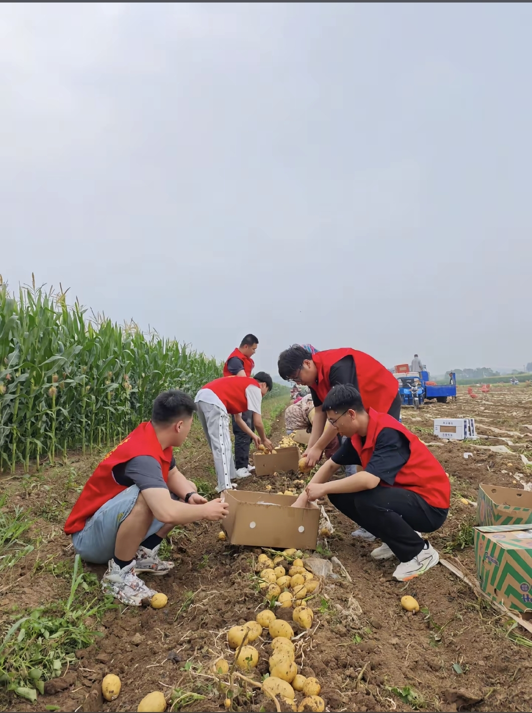 活动中,志愿服务队精准对接农户需求,分设“田间帮扶组”“农技宣传组”,多维度开展助农工作。在田间地头,志愿者们跟着农户学农活、干实事——正值作物管护关键期,他们在种植能手的指导下,走进田间,协助疏果、除草,尽管手上沾了泥土、额头渗了汗珠,却始终干劲十足。