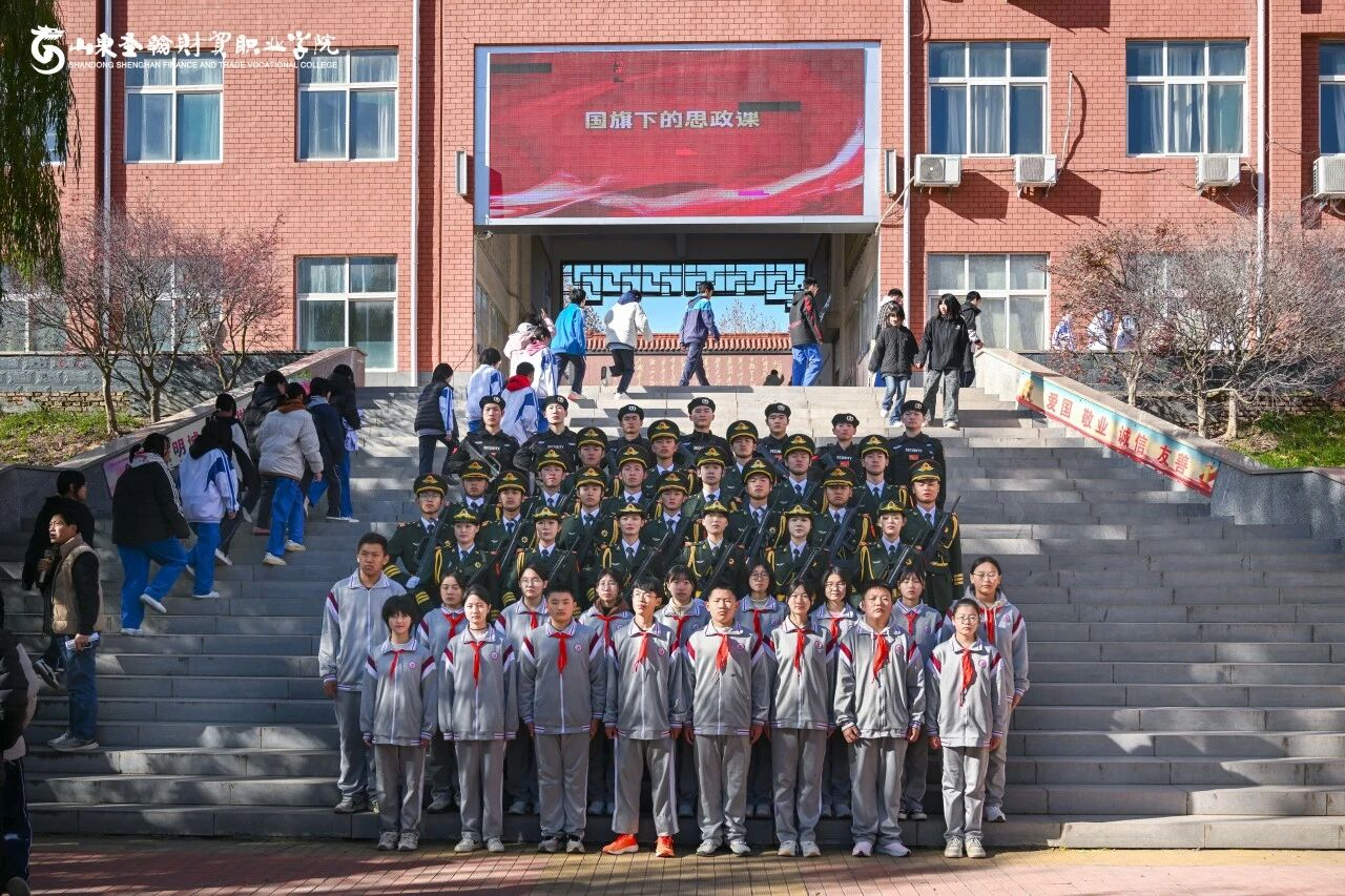 活动在庄严的升旗仪式中拉开序幕。山东圣翰财贸职业学院国旗护卫队队员身着礼服,精神抖擞、步伐铿锵,迈着整齐划一的正步走向升旗台。伴随着雄壮的《义勇军进行曲》,五星红旗冉冉升起、迎风飘扬,全体人员肃立行注目礼,深切感受国旗的庄严与国家的荣耀,爱国情怀在心中激荡 。